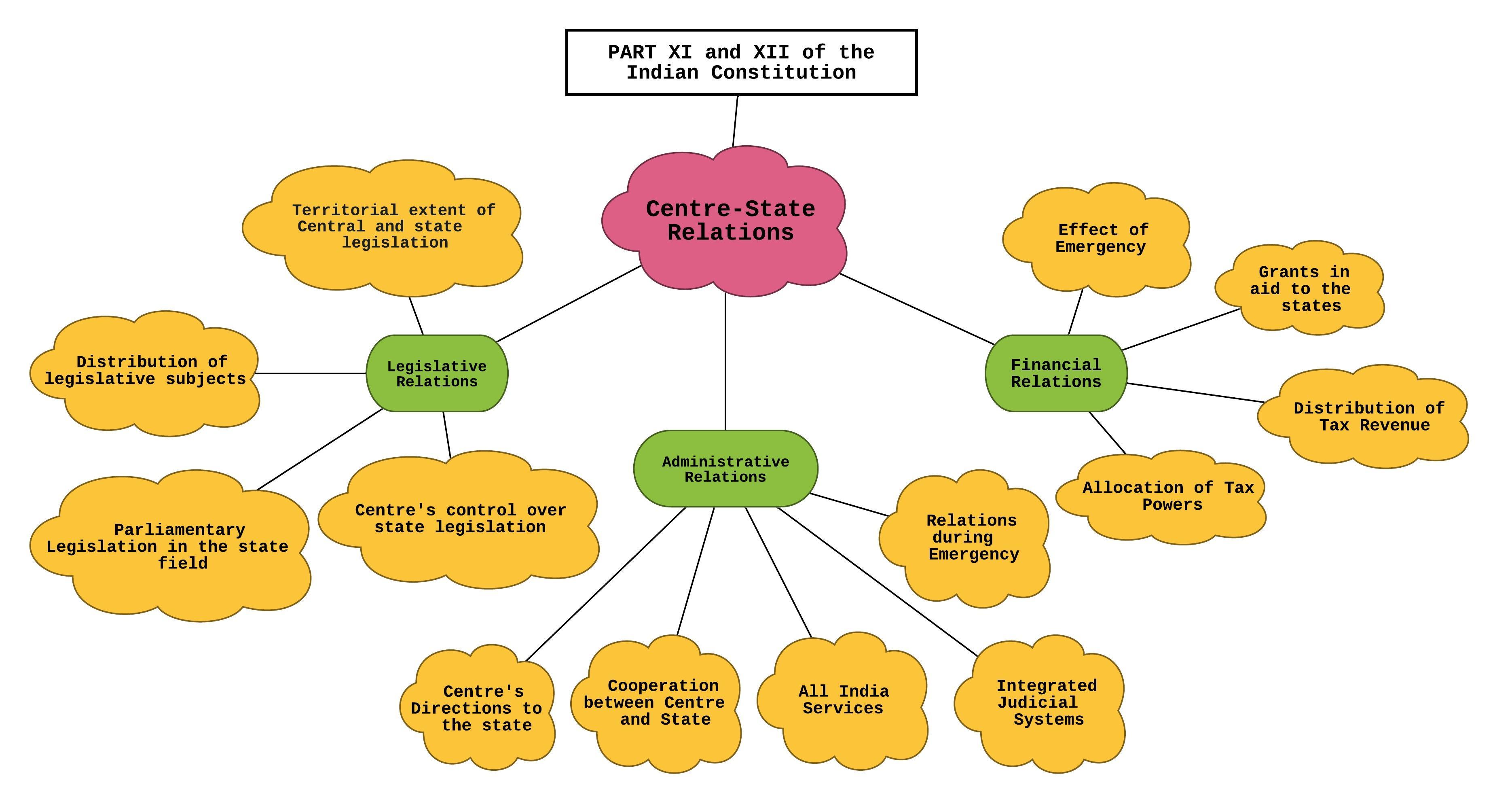The relations between the Centre and the States have been mentioned in Parts XI and XII of the Constitution under three heads,