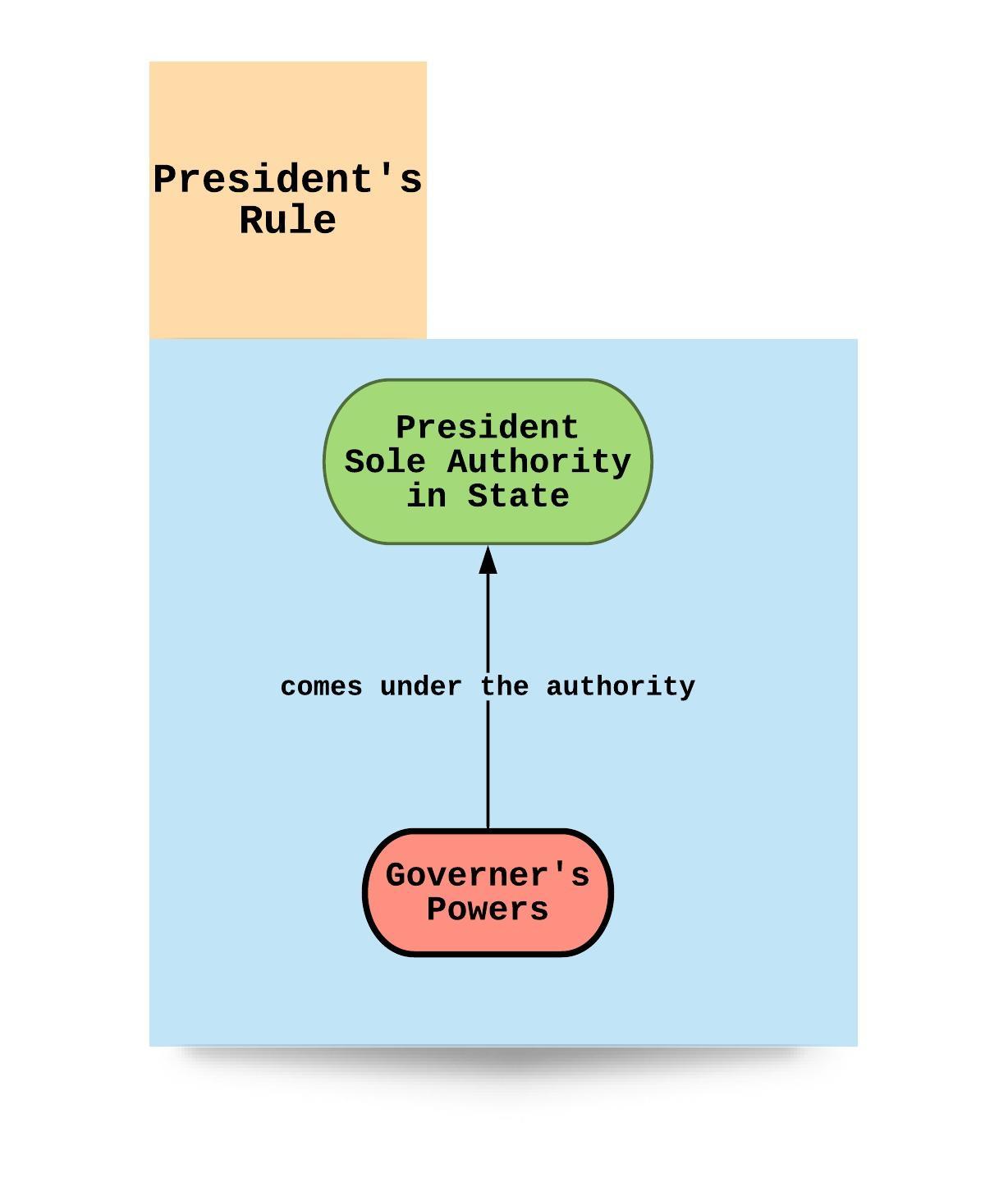 - When the president rule imposed on a state or during a state emergency (under Article 356), the president can assume to himself all or any of the functions of the Government of the State and powers exercisable by the Governor or authority in the State, other than the Legislature of the State.