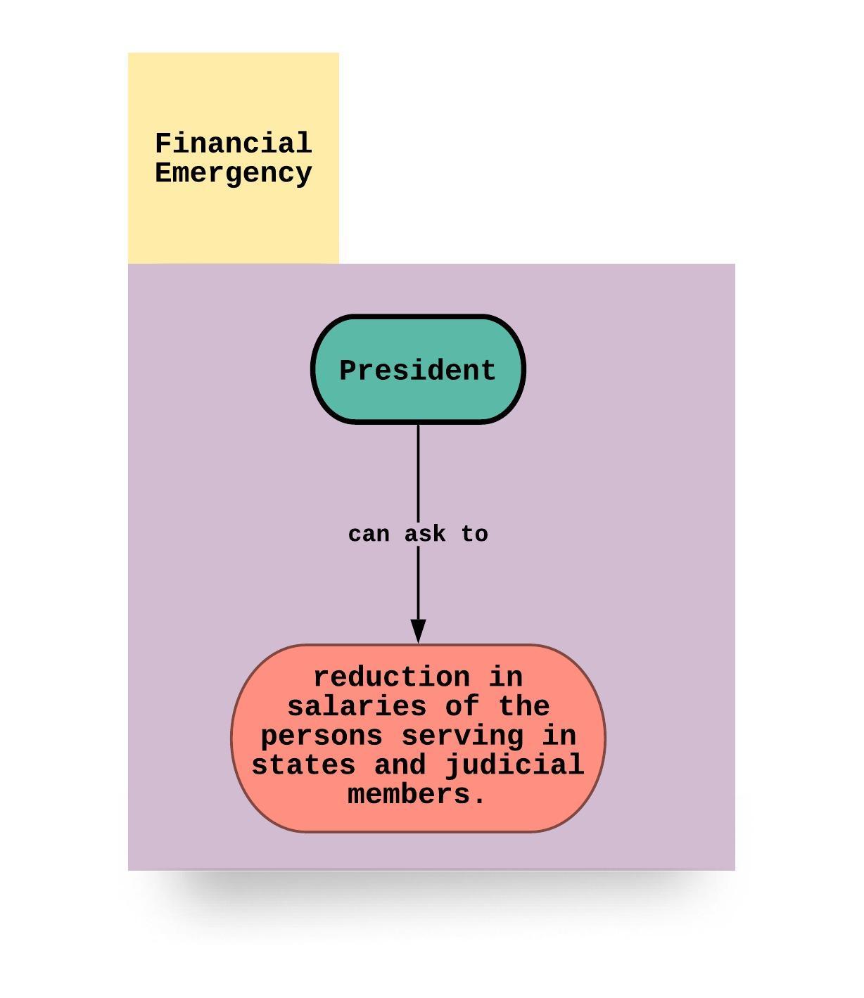 - During the operation of a financial emergency (under Article 360), the Centre can direct the states to observe laws of financial propriety and the President can give other necessary directions including the reduction of salaries of persons serving in the state and the high court judges.