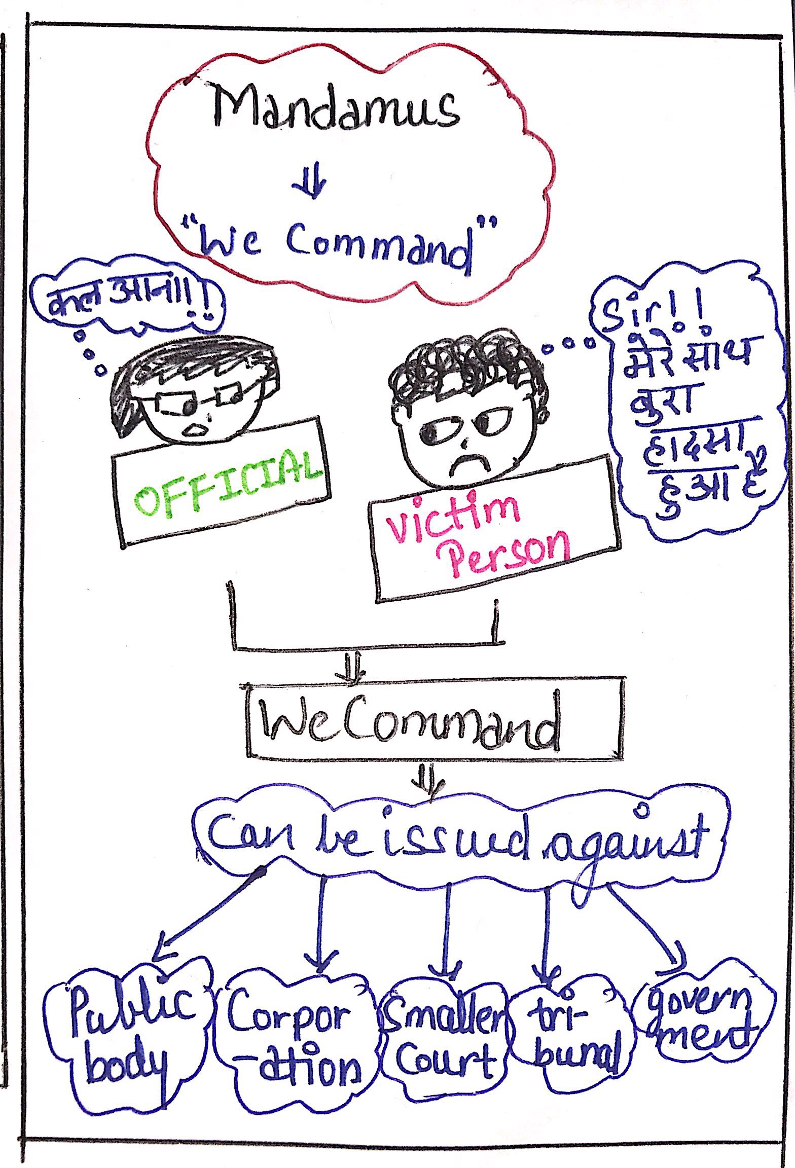 One can issue Mandamus writ against any public body, a corporation, a smaller court, a tribunal or government. One can not issue this writ against private individuals.
